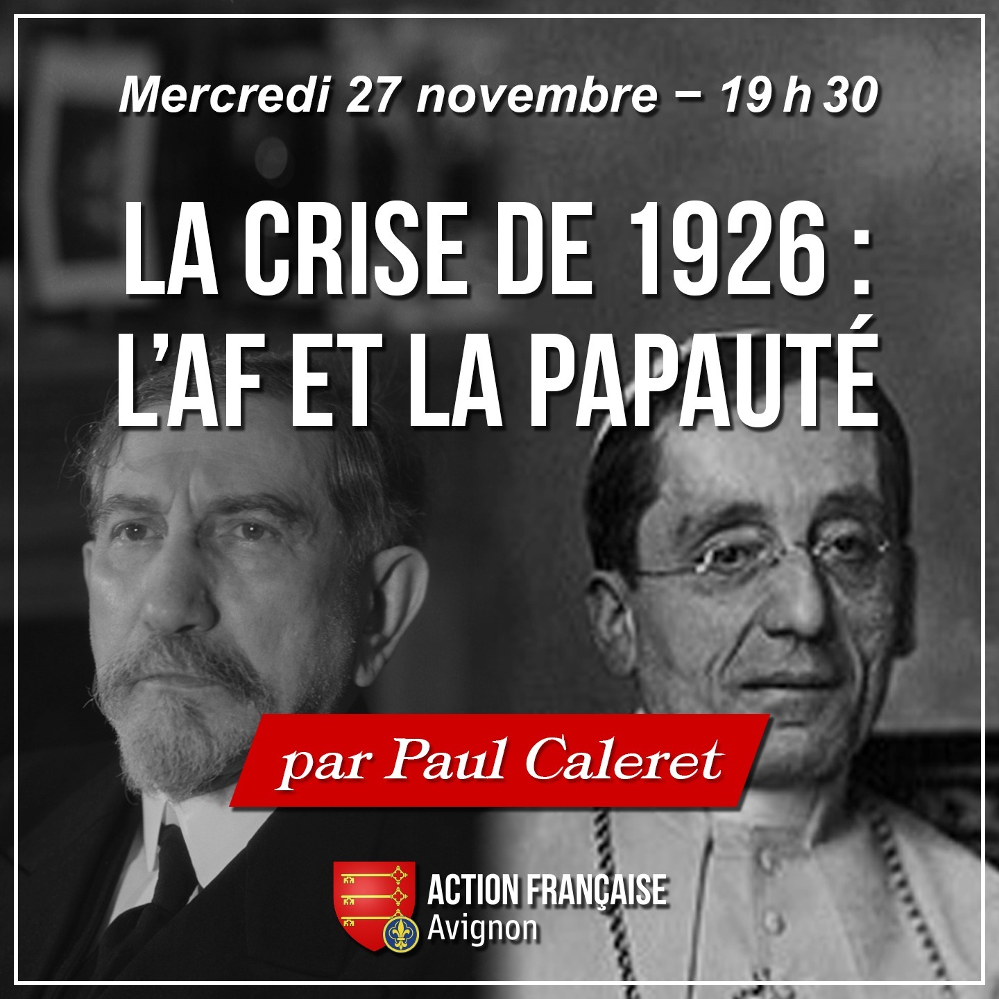 ✝️ Ce mercredi 27 novembre, notre militant Paul Caleret nous propose un cercle de formation sur la crise de 1926 entre l’Action française et la papauté.