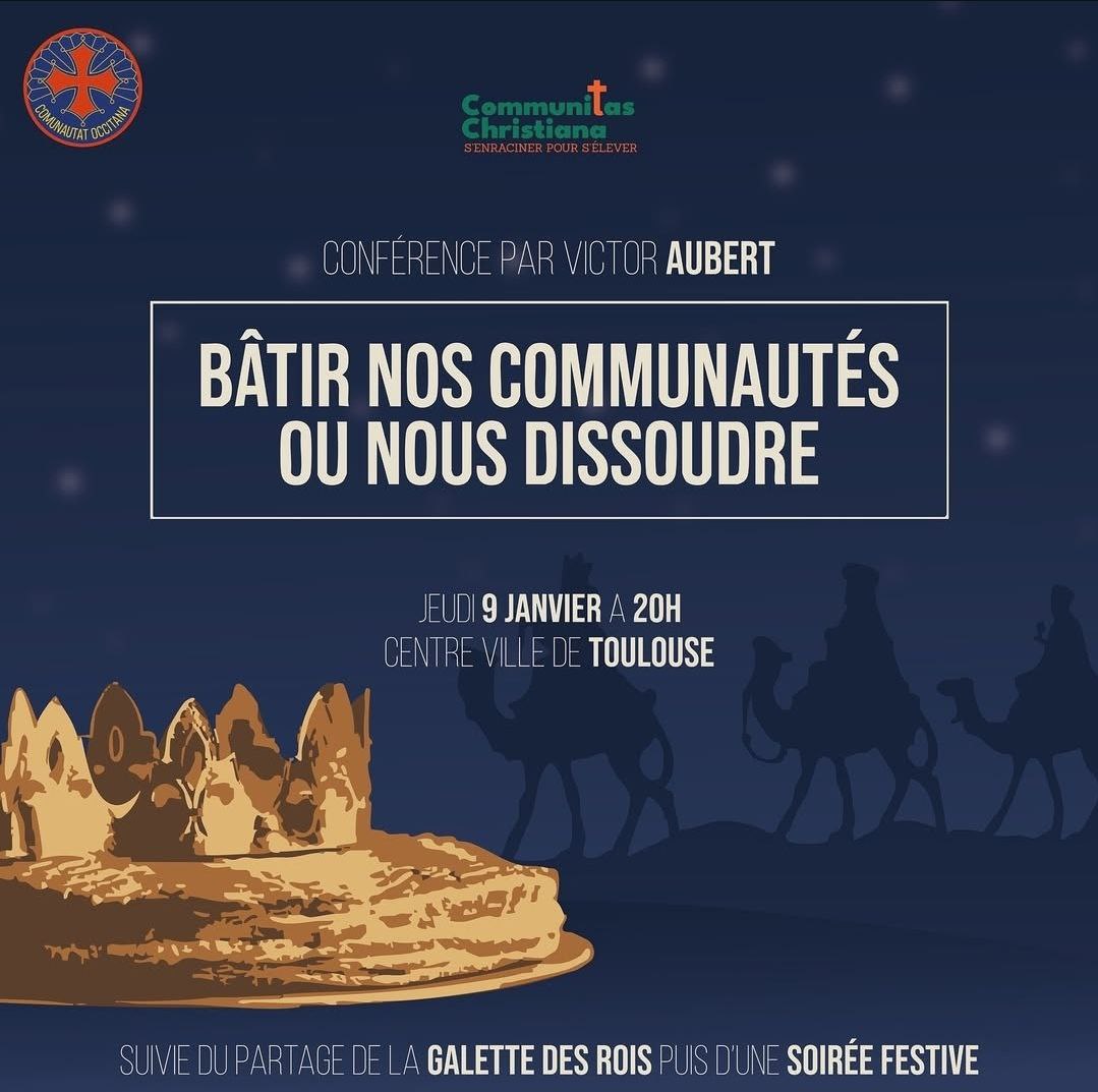 Pour l’occasion, nous accueillons Victor Aubert dans notre ville rose. Il nous donnera une conférence sur « Bâtir nos communautés ou nous dissoudre ». Elle sera suivie du partage de la traditionnelle Galette des Rois, puis d’une soirée festive.