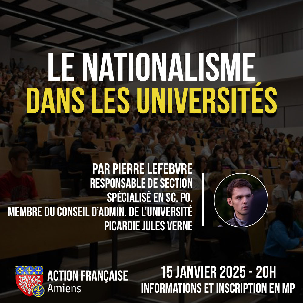 👨🎓 Face à la montée de l'idéologie du Progrès absolu dans nos universités, nous vous proposons de venir découvrir l'alternative nationaliste présenté par Pierre Lefevbre.