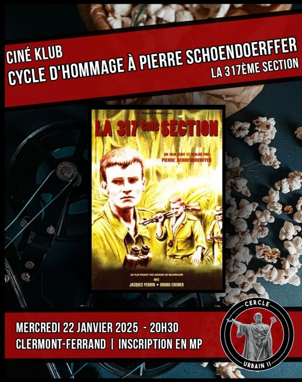 Le mercredi 22 janvier à 20h30, le Cercle Urbain II continue son cycle d'hommage à Pierre Schoendoerffer.