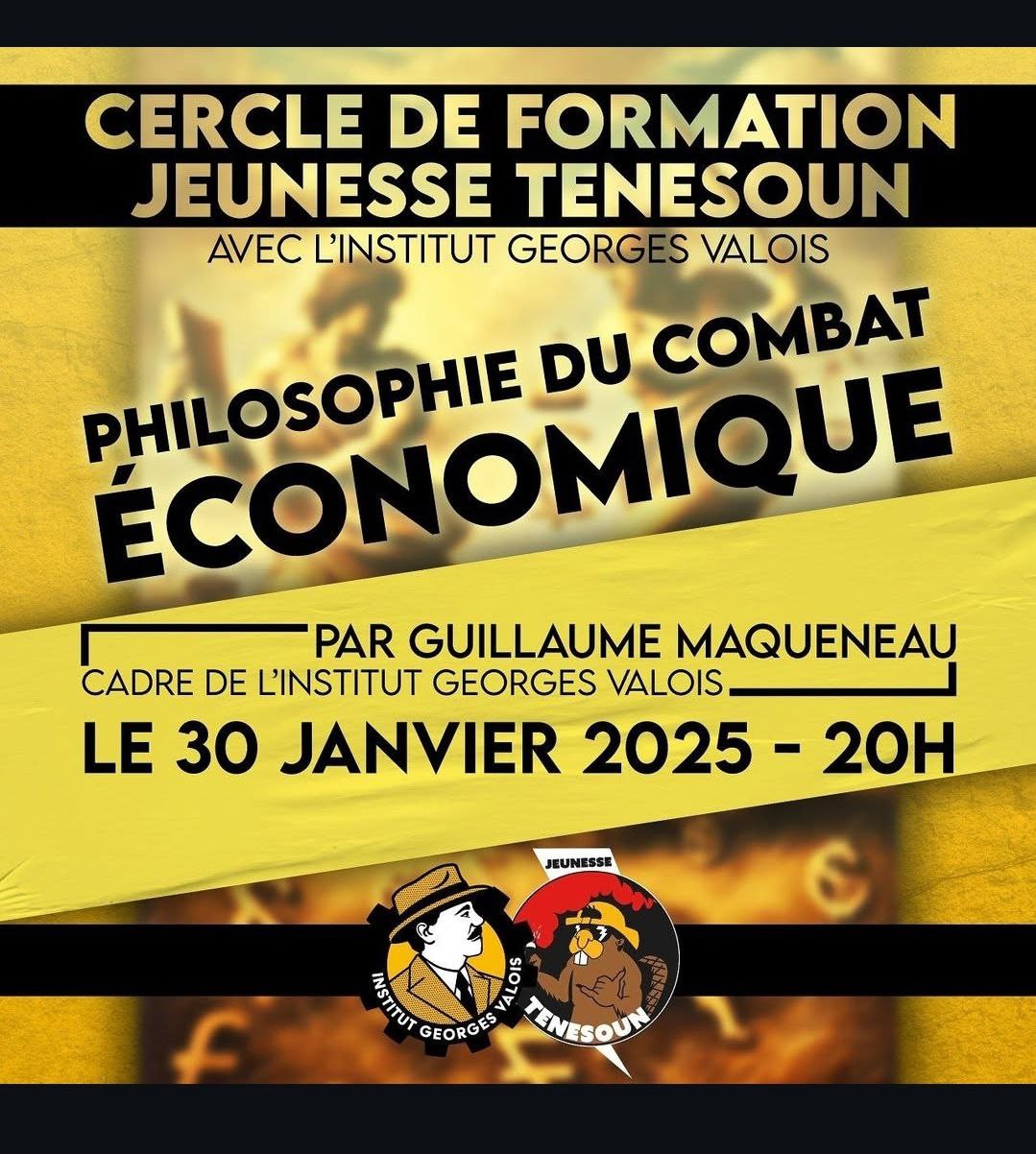 Jeudi 30 janvier, nous recevons Guillaume Maqueneau, intervenant pour @institut_georgesvalois qui viendra nous parler de l'importance du combat économique.