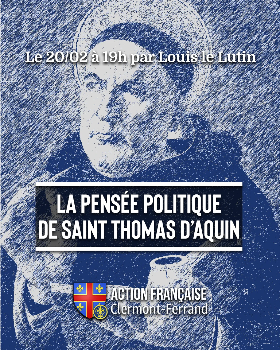 ✝️ Nous vous attendons nombreux ce jeudi pour une conférence sur la pensée politique de Saint Thomas d'Aquin.