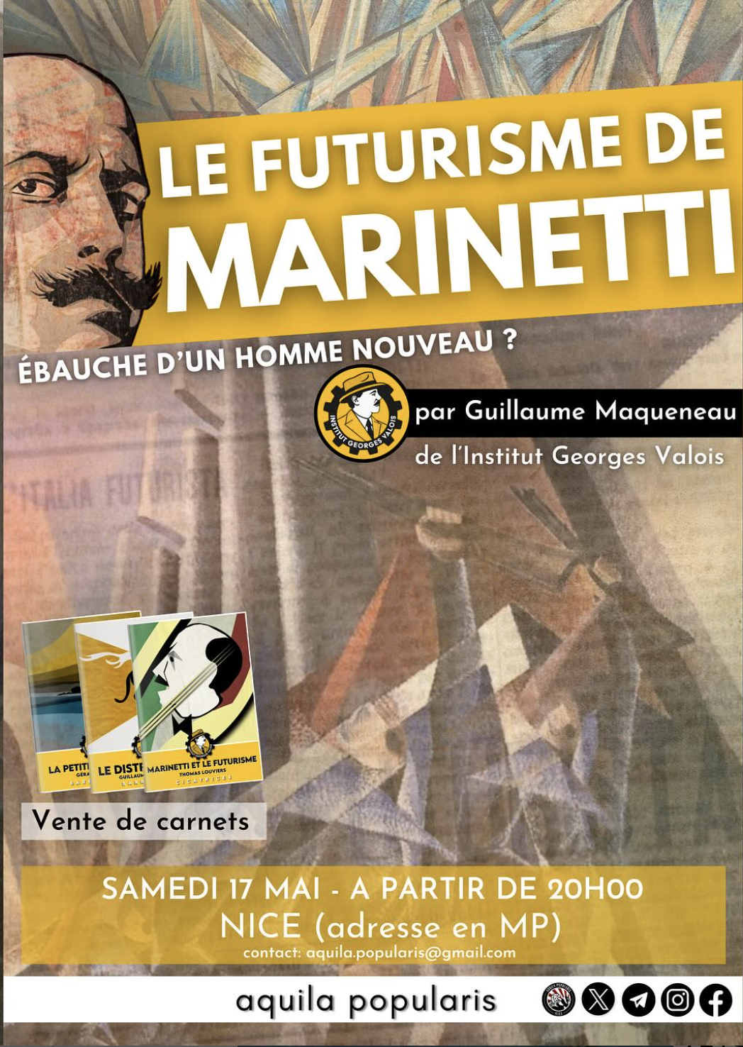👉🏻 Nous accueillerons ce samedi 17mai prochain Guillaume Maqueneau de l’@institut_georgesvalois afin de nous parler du futurisme de Marinetti, fusionnant l’esthétisme au politique.