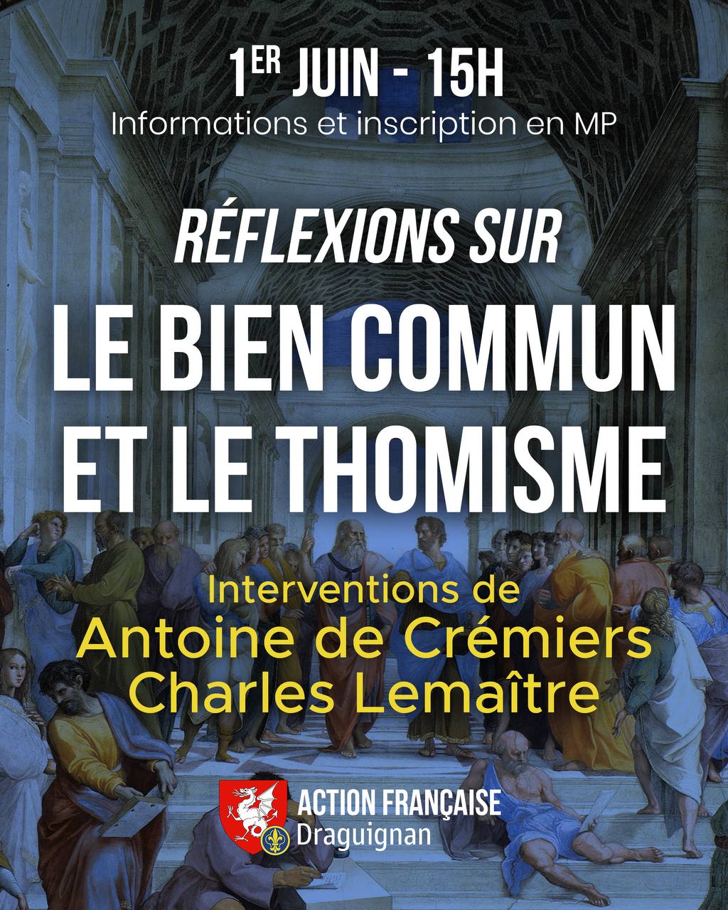 Au programme : 2 intervenants traiteront successivement du bien commun puis du thomisme.