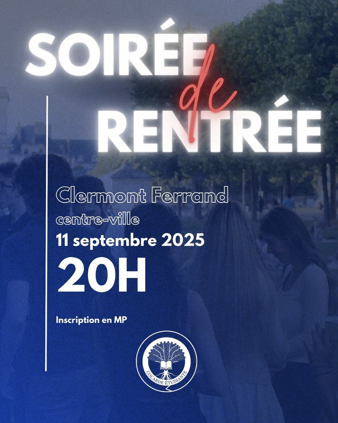 Nous aurons le plaisir de nous retrouver jeudi pour la soirée de rentrée de la section auvergnate de la @cocardeetudiante !