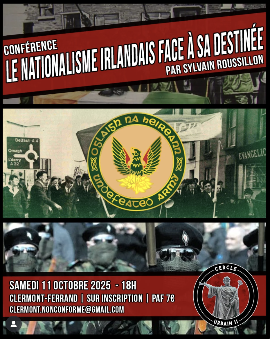 Le samedi 11 octobre, le Cercle Urbain II aura le plaisir de recevoir Sylvain Roussillon, pour une conférence sur le nationalisme irlandais.