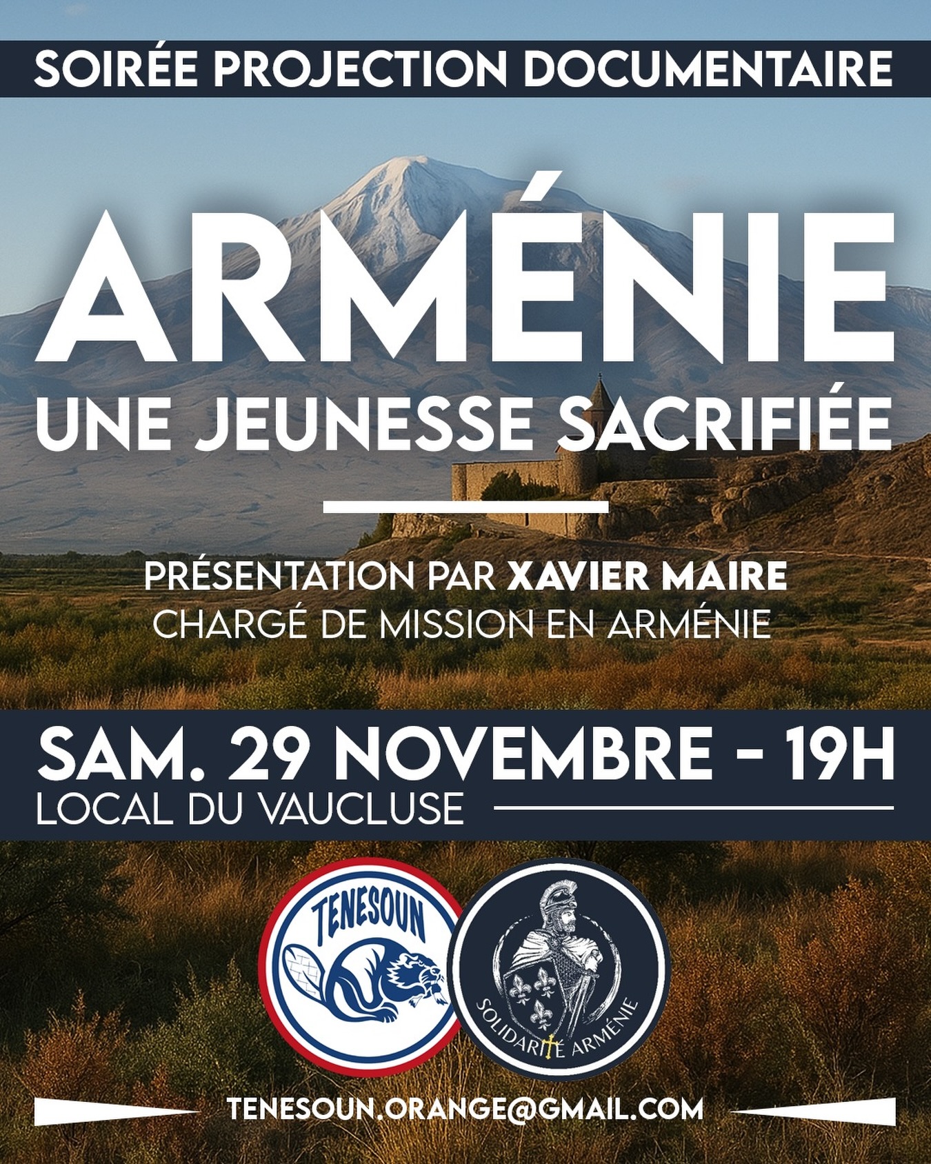 🇦🇲 Samedi, Tenesoun vous donne rendez-vous en collaboration avec Solidarité Arménie pour une soirée documentaire sur le film « Une jeunesse sacrifiée » et proposant des portraits sur la jeunesse arménienne à l'orée du conflit du pays avec l'Azerbaïdjan.