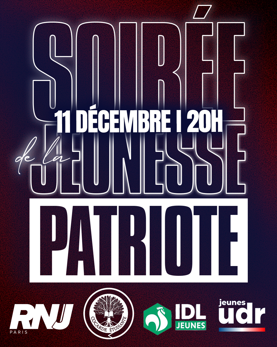Rejoignez les jeunes patriotes parisiens lors de cette grande soirée transpartisane.