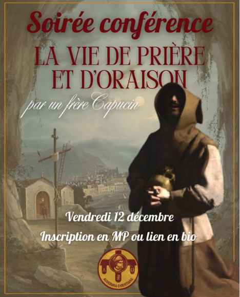 Chers amis ! Nous avons le plaisir de vous convier à notre dernière soirée-conférence de l’année 2025, donnée par un frère Capucin, portant sur La vie de prière et d’oraison.