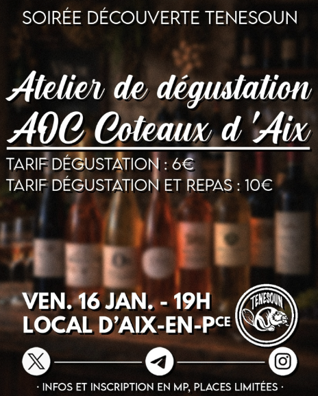 🍷 Vendredi soir, à partir de 19h aura lieu notre deuxième atelier dégustation, au local d’Aix.