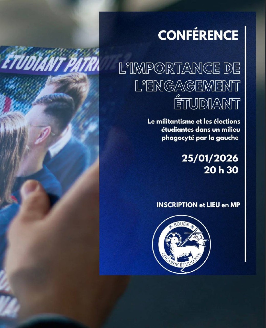 Nous aurons le plaisir de recevoir Guillaume, coordinateur national de la Cocarde et Louis Defever, délégué départemental RN du Calvados, qui interviendront sur l'engagement étudiant.