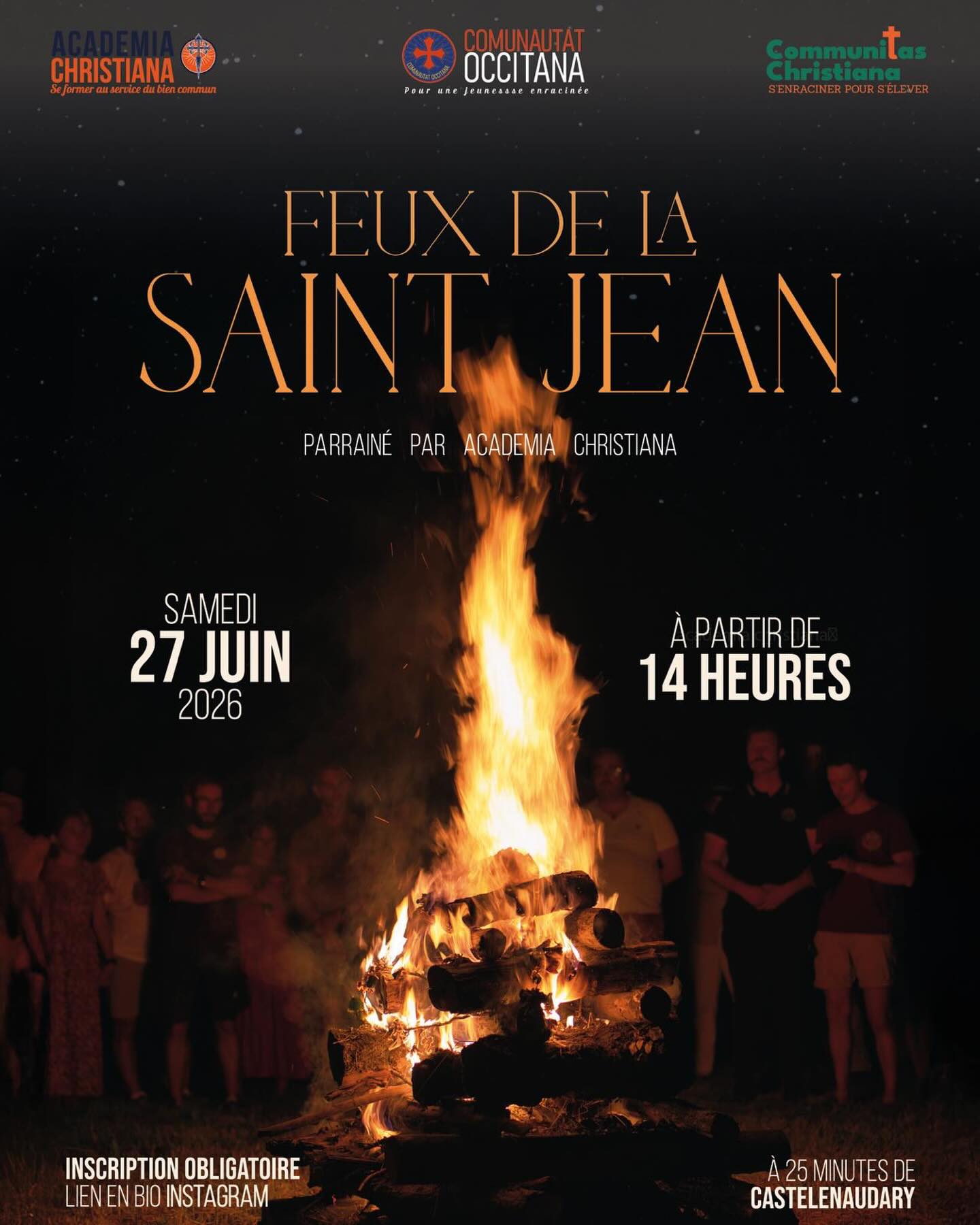 Cette année, nous vous donnons rendez-vous pour les Feux de la Saint-Jean, parrainés par Academia Christiana, un moment fort de fraternité, de tradition et de fête.