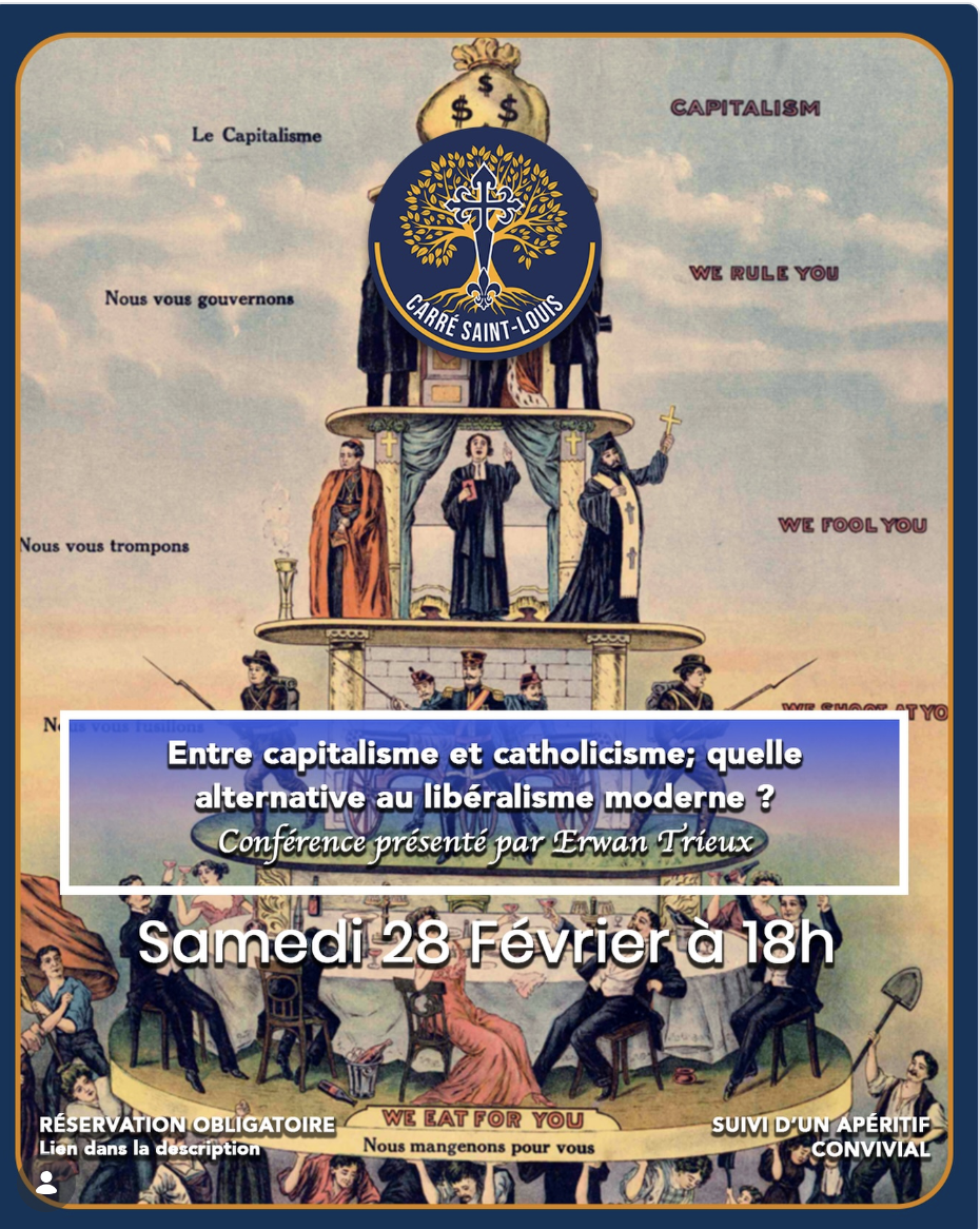 🎊 Le Carré Saint-Louis vous invite à sa nouvelle conférence le samedi 28 février sur la question de l’alternative au libéralisme moderne.