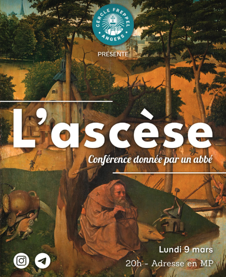 📚Le cercle Freppel vous donne rendez-vous le lundi 9 mars prochain à 20h pour une conférence ayant pour thème l’ascèse.