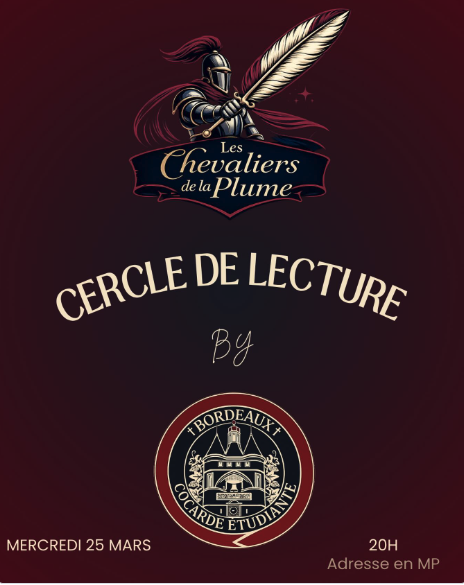 Rendez-vous mercredi à 20h, pour la première édition du cercle de lecture “Les Chevaliers de la Plume”, organisé par La Cocarde Bordeaux.