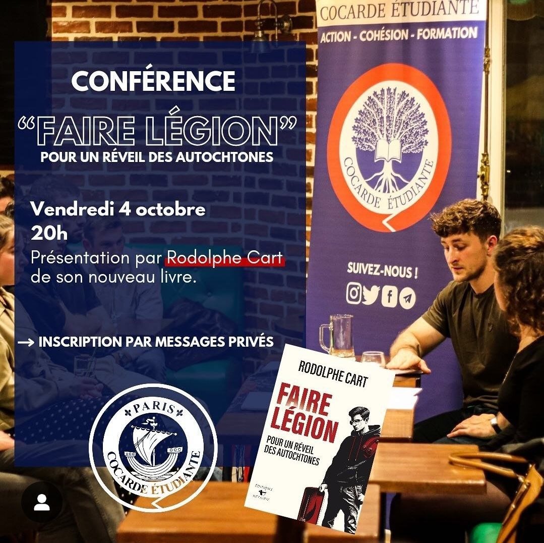 La Cocarde Paris recevra Rodolphe Cart vendredi 4 octobre autour de son nouveau livre « Faire légion », proposition d’un mythe mobilisateur pour le nationalisme d’aujourd’hui.