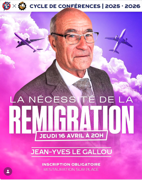 💡 Pour répondre au grand défi de notre siècle, Luminis et l'Institut Georges Valois auront le plaisir de recevoir le jeudi 16 avril à 20h, Jean-Yves le Gallou, essayiste, haut fonctionnaire, ancien député européen et fondateur du laboratoire d'idée Polemia, auteur d'un essai sur la Remigration aux éditions de La Nouvelle Librairie.